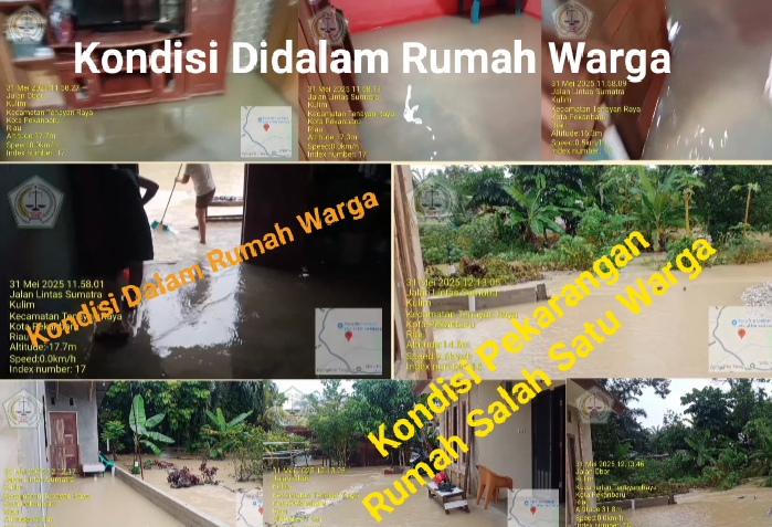 PEKANBARU, (Kanalkini.com) - Akibat hujan deras yang sejak subuh hingga siang mengakibatkan sejumlah titik jalan dan rumah warga di kota Pekanbaru tergenang banjir. Sabtu, 31/5/25. Sejumlah rumah warga tergenang banjir pekarangan hingga masuk ke dalam rumah warga di jalan. Obor Rt/Rw. 002/011, Kel. Mentangor, Kec. Kulim Kota Pekanbaru. Ini akibat salah satu anak sungai yang tidak dalam dan tidak lebar hingga meluap kerena tidak tertampung untuk mengalir ke hilir sungai.Salah seorang warga