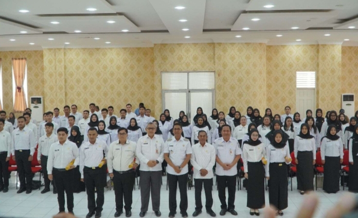 ROHIL, (Kanalkini) - Pemerintah Kabupaten Rokan Hilir secara resmi menyerahkan Surat Keputusan (SK) pengangkatan kepada 71 Calon Pegawai Negeri Sipil (CPNS) formasi Tahun 2024 di Aula Kantor Badan Pengelola Keuangan dan Aset Daerah (BPKAD), Bagansiapiapi. Rabu, 28/5/25. Prosesi penyerahan SK dilakukan langsung oleh Wakil Bupati Rokan Hilir, Jhony Charles. CPNS tersebut dijadwalkan mulai menjalankan tugas kedinasan di lingkungan Pemerintah Kabupaten Rokan Hilir pada tanggal 2 Juni 2025