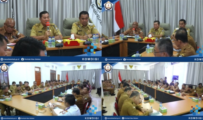 NISEL, (Kanalkini.com) - Sökhiatulö Laia Bupati Nias Selatan Pimpin langsung pelaksanaan rapat koordinasi dengan seluruh Kepala OPD di Pemkab Nias Selatan, didampingi oleh Wabup Ir. Yusuf Nache, ST., MM, dan Sekda Ir. Ikhtiar Duha, MM, di Ruang rapat Bupati Nias Selatan. Jalan Arah Sorake km 5. Teluk dalam. Selasa, 08/04/2025.Dalam arahannya Bupati Nias Selatan Sokhiatulo Laia menyampaikan kepada seluruh Kepala OPD untuk mengingatkan Kembali agar seluruh ASN disiplin dalam