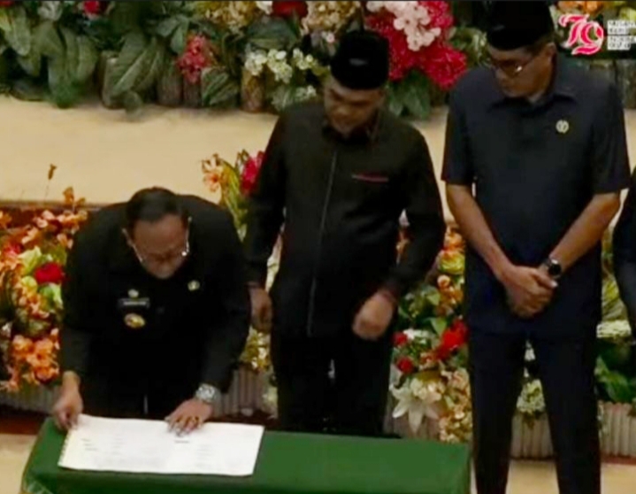PEKANBARU, (Kanalkini.com) – Rancangan Peraturan Daerah (Ranperda) Anggaran Pendapatan dan Belanja Daerah (APBD) Provinsi Riau tahun 2025 telah disetujui dan sahkan DPRD Riau menjadi Peraturan Daerah (Perda). Dewan Perwakilan Rakyat Daerah (DPRD) Provinsi Riau, melalui rapat paripurna telah mengesahkan Perda. Sabtu (30/11/24) malam. Rapat Paripurna dipimpin langsung oleh Kaderismanto Ketua DPRD Prov Riau.“Anggota dewan menyetujui Ranperda APBD Provinsi Riau TA 2025 menjadi