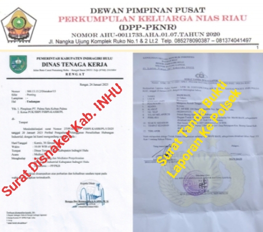 DPP PKNR, Surat Disnaker Kab. Inhu dan Bukti Laporan Penganiayaan. *** |