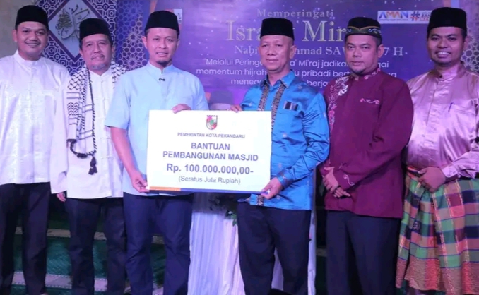 Wako Pekanbaru Serahkan Bantuan Pembangunan Masjid