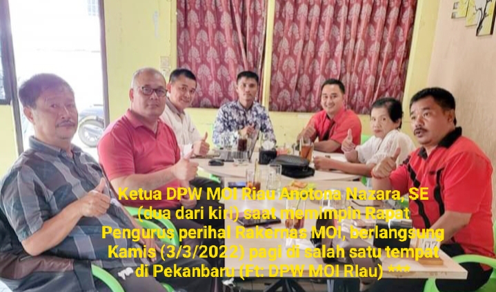 Ketua DPW MOI Riau Anotona Nazara, SE., setelah mendapat surat dari DPP MOI perihal Rakernas, langsung mengundang dan memimpin rapat pengurus DPW MOI Riau, yang berlangsung Kamis (3/3/2022) pagi di