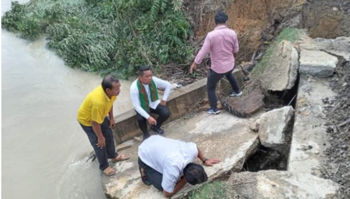 Jembatan Amblas Di Kecamatan Ukui Akibat Curas Hujan Deras H. Zukri Bupati Pelalawan Bersama Trantib Tinjau Jembatan Amblas