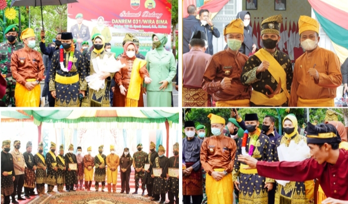 Danrem Sandang Gelar Datuk Setio Lelo Perkaso Dari LAM Rohil Bupati Rohil Bersama Wabup Sambut Kunjungan Kerja Danrem 031/ Wira Bima
