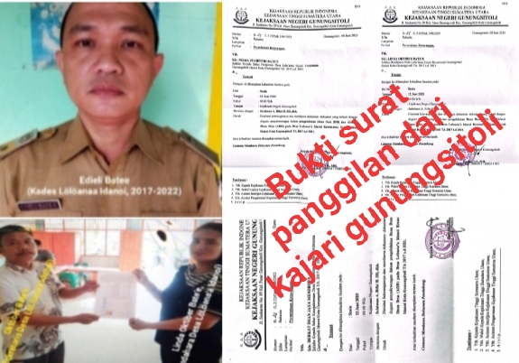 GUSIT-SUMUT, (Kanalkini.com) - Kasus dugaan korupsi Dana Desa (DD) dan Anggaran Dana Desa (ADD), yang sudah diadukan atau di laporkan oleh masyarakat desa Loloanaa Idanoi bahkan sudah sangat viral di beritakan media, yang sampai saat ini kasus tersebut terkesan mengendap alias mentok di Kajari Kota Gunungsitoli Prov Sumut.