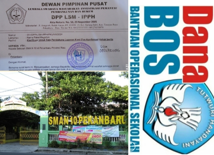 PEKANBARU, (Kanalkini.com) - Terkait Penyaluran dan Peruntuhkan Dana Bos T.A 2023, Team Dari LSM-IPPH (Lembaga Swadaya Masyarakat - Invetigasi Pemantau Pembangunan dan Hukum) bersama media Beritaistananegara.co.id. Menyuratin pihak sekolah (Kepala sekolah) SMA Negeri 10 Kota Pekanbaru, dengan nomor surat: 051/DPP/LSM-IPPH/PKU/VII/2024, ter tanggal 24 Juli 2024 dan telah diterima oleh pihak sekolah bernama Sisca. Surat untuk klarifikasi dan konfirmasi, hal tersebut untuk tindak lanjut surat LSM
