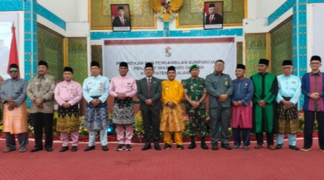 PELALAWAN, (Kanalkini.com) - H. Zukri Misran Bupati Pelalawan pimpin pelantikan dan pengambilan sumpah janji H. Abdul Karim, S.H.,M.Si, Penjabat Sekretaris Daerah Kabupaten Pelalawan di Gedung Daerah Datuk Laksrmana Mangkudiraja untuk mengisi kekosongan jabatan Sekretaris Daerah Kabupaten Pelalawan. Pelantikan di laksanakan di Gedung Daerah Datuk Laksemana Mangkudiraja. Jumat, 7/7/23. Sebelumnya, Sekretaris Daerah Kabupaten Pelalawan H. Tengku Mukhlis telah meninggal dunia pada 25 Juni 2023 yang lalu.
