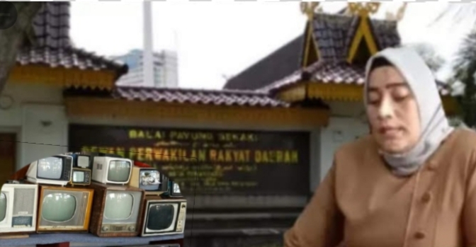 Badria Rikasari (mantan plt sekwan), plang nama dprd kota pekanbaru dan Tv (ft. Net). *** |