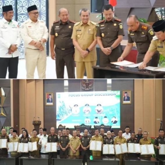 Bupati dan Wali Kota se-Riau menandatangani perjanjian MoU (Memorandum of Understanding) Jaga Zona Pertanian, Perekonomian, dan Perindustrian (Jaga Zapin) dengan Kepala Kejaksaan Negeri (Kejari) se-wilayah Riau. **"