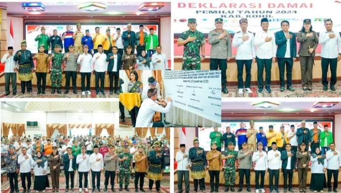 Bupati Rohil Afrizal Sintong SIP, M.Si dalam sambutannya berharap deklarasi yang dilakukan benar-benar mampu menciptakan suasana yang kondusif dikalangan para pendukung maupun peserta pemilu.