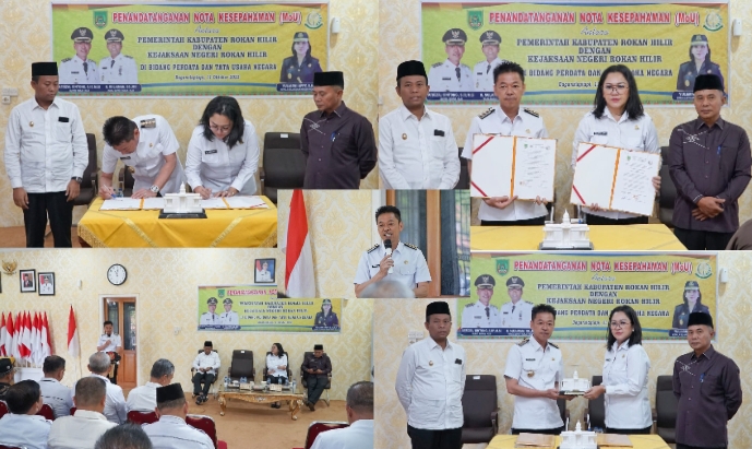 MoU yang ditandatangani langsung oleh Bupati Rohil Afrizal Sintong dan Kepala Kejari Rohil Yuliarni Aphy yang disaksikan langsung Wakil Bupati Sulaiman, Kasi Datun Rendi Panalosa, Wakil Ketua DPRD Basiran Nur Efendi, para asisten dan seluruh kepala dinas dilingkungan Pemkab Rohil.