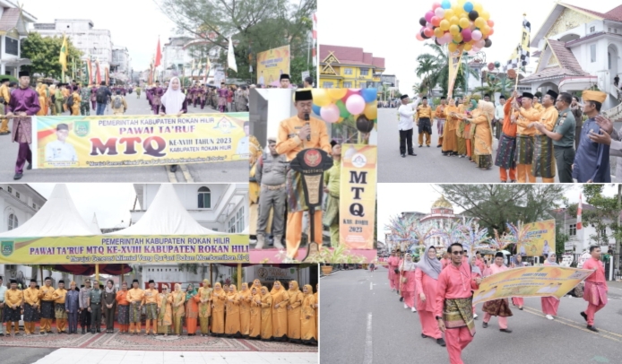 "Dengan mengucapkan bismillahirrahmanirrahim peserta pawai ta'aruf MTQ ke XVIII tingkat Kabupaten Rohil secara resmi kami lepas," ucap Bupati. (Sg/Invot)