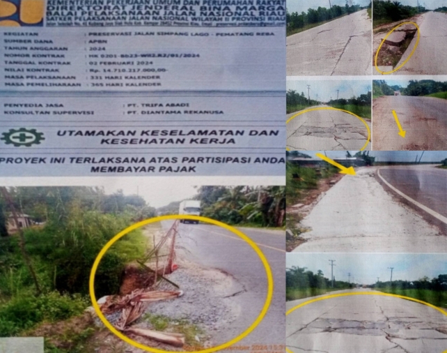 menelan dana anggaran APBN T.A 2024 sebesar Rp.14.710.217.000,00,-. Tim menemukan di sepanjang badan jalan dan ruas jalan dari simpang Lago – pematang Reba, terdapat atau terlihat