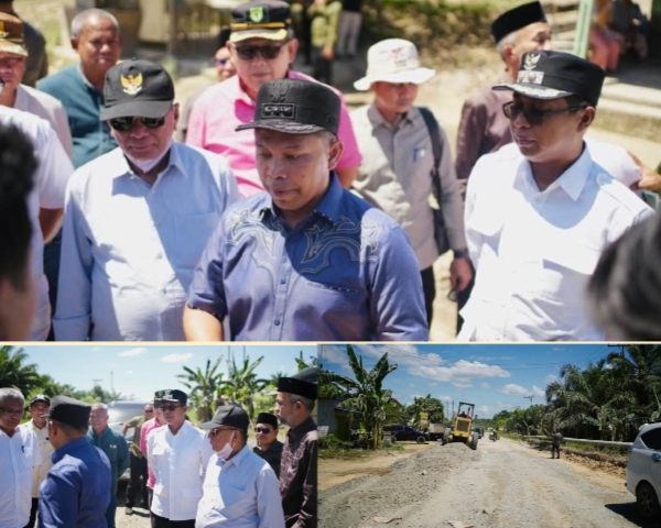 Gubernur Riau Abdul Wahid bersama Bupati Rohil H Bistamam serta Wabup Jhony Charles yang turut mendampingi melihat langsung kondisi Jalan Lintas Manggala Junction - Pujud yang hancur dan berdebu.