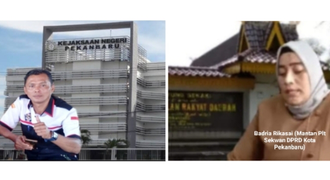 Ketua PMP, Kantor Kajari dan Badria Rikasari Mantan Plt Sekwan DPRD Kota Pekanbaru. *** |