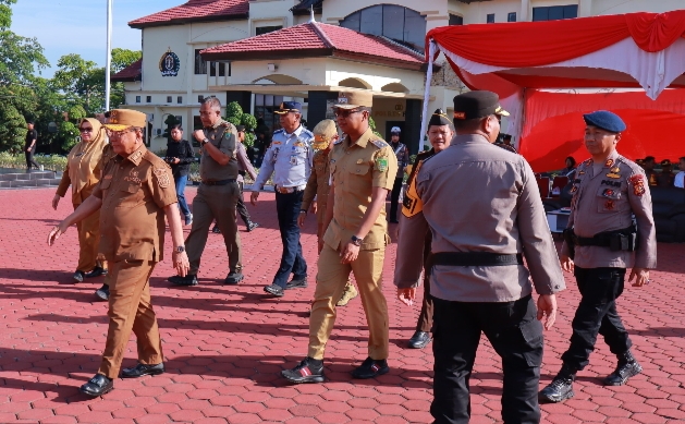 ROHIL, (Kanalkini) - H. Bistamam Bupati Rohil dan Jhony Charles Wakil Bupati Rohil menghadiri Apel Gelar Pasukan dalam rangka Operasi Patuh Lancang Kuning 2025 di Polres Rohil, Senin (14/7/2025) pagi.