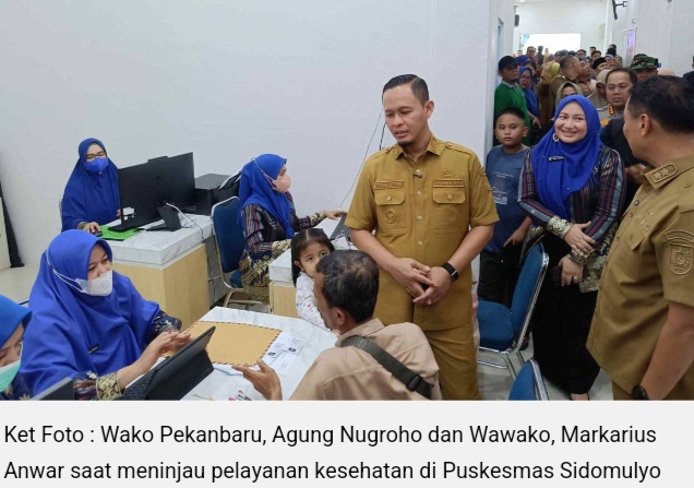 | Wako Pekanbaru, Agung Nugroho dan Wawako, Markarius Anwar saat meninjau pelayanan kesehatan di Puskesmas Sidomulyo. *** |