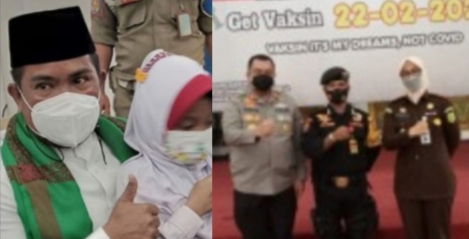 Sebelum vaksinasi dimulai, Bupati H. Zukri memberi himbauan kepada masyarakat agar tidak takut untuk melakukan suntik vaksin. Zukri juga memberikan semangat kepada anak dengan cara mendampingi saat disuntik vaksin.