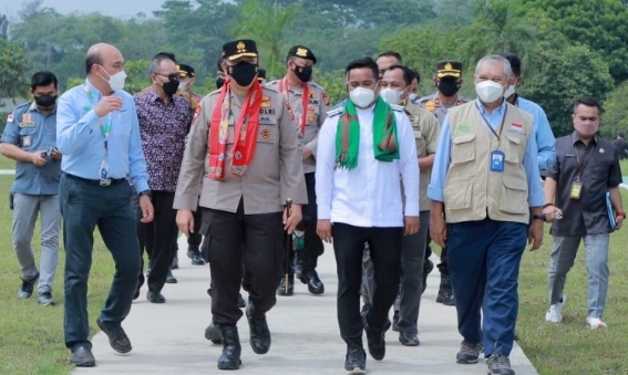 Irjen Pol M. Iqbal SIK, MH, Kepala Kepolisian Daerah Riau, meninjau pelaksanaan vaksinasi massal di Riau Kompleks PT Riau Andalan Pulp and Paper (RAPP).*** |
