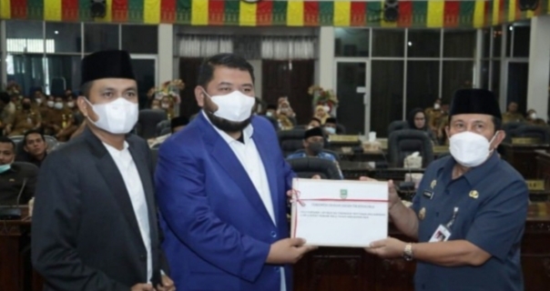 DPRD ROHUL, (Kanalkini.com) - Paripurna DPRD Rokan Hulu (Rohul) Bupati H Sukiman menyerahkan Laporan Keterangan Pertanggungjawaban (LKPJ) Tahun Anggaran 2021 Senin (18/4/2022).