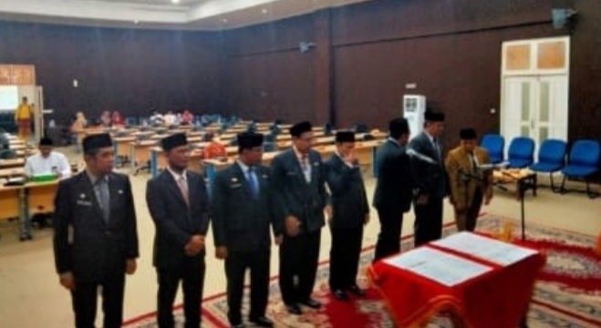PELALAWAN, (Kanalkini.com) - Bupati Pelalawan H. Zukri lantik sekaligus Pengambilan Sumpah/Janji Pejabat Pimpinan Tinggi Pratama di lingkungan Pemerintah Kabupaten Pelalawan, Riau, bertempat di Auditorium Lantai 3 Kantor Bupati Pelalawan, Jumat (10/06/2022).