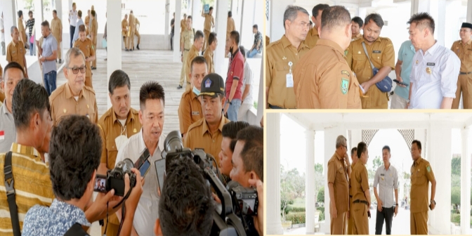 Bupati Rokan Hilir (Rohil) Afrizal Sintong bersama Wakil Bupati H. Sulaiman saat melakukan peninjauan persiapan pelaksanaan MTQ tingkat Provinsi Riau di Taman Budaya, Batu Enam, Bagansiapiapi. ***