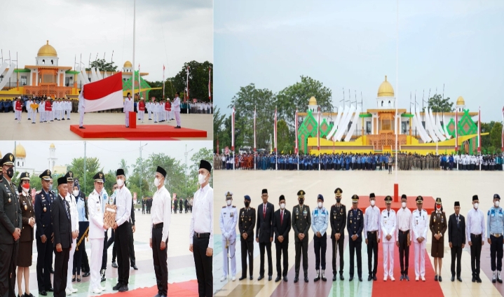 HUT 77 RI, Pemkab Rohil Gelar Upacara Pengibaran Bendera ***