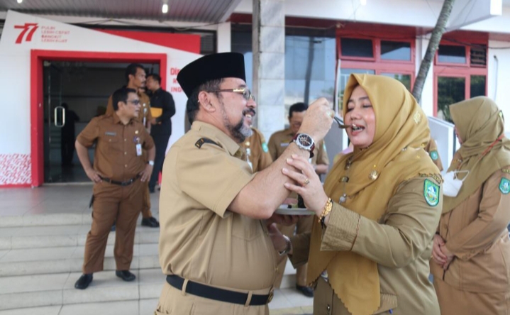 BENGKALIS, (Kanalkini.com) - Sekretaris Daerah Bengkalis H Bustami HY, Sabtu 7 September 2022, genap berusia 58 tahun. Pagi ini, Senin, 12 September 2022, usai memimpin apel bersama di halaman Kantor Bupati Bengkalis, pria kelahiran Rumbio Jaya, Kabupaten Kampar, 7 September 1964 itu mendapat surprise dari pegawai di lingkungan Pemerintah Kabupaten Bengkalis.