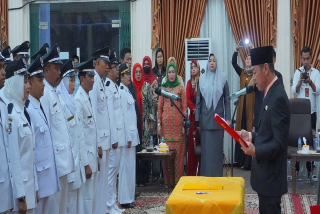 ROHIL, (Kanalkini.com) - Afrizal Sintong Bupati Rokan Hilir, melantik sebanyak 35 orang pejabat dan penjabat penghulu dari 35 desa yang masa jabatan penghulu ya telah habis masa periodenya. Pelantikan tersebut dilaksanakan di Gedung Misran Rais Bagansiapiapi. Pelantikan itu ditandai dengan pemasangan tanda pangkat oleh Bupati Rohil sekaligus menyerahkan langsung surat keputusan (SK)masing - masing desa. Senin, (19/9/2022).