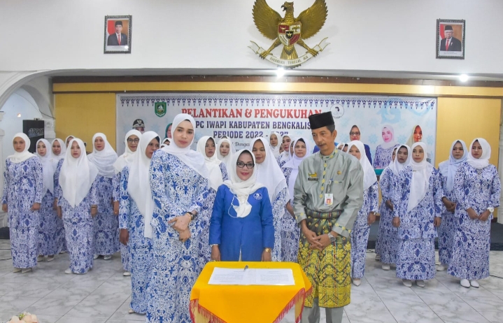 Bupati Bengkalis Kasmarni, yang diwakili Staf Ahli Bupati Bidang Ekonomi, Keuangan dan Pembangunan, Johansyah Syafri, mengukuhkan secara resmi para pengurus yang diketahui Devi Susanti, setelah dilantik oleh Ketua DPD IWAPI Riau, Hj Maryenik Yanda, di Gedung Daerah Laksamana Raja Dilaut.