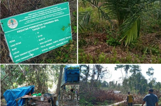 Menurut informasi di lapangan, bahwa, Program ini sudah dilaksanakan sejak 2019, berlanjut 2021 dan berakhir tahun 2023 mendatang. Anehnya disekitar lokasi kegiatan RHL, tampak ditanami pohon kelapa sawit, yang seharusnya di areal RHL harus ditanami bibit jenis tanaman Durian Jengkol Petai.