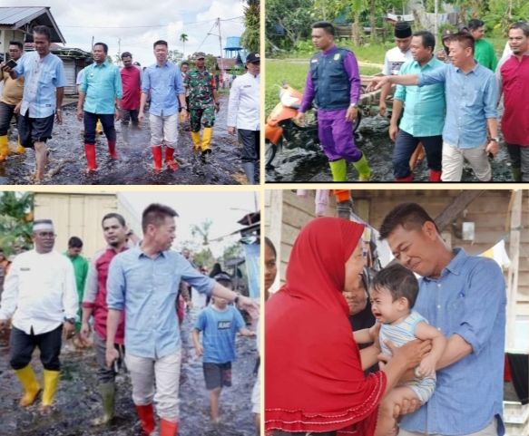 ROHIL, (Kanalkini.com) - Afrizal Sintong Bupati Rokan Hilir dan Wakil Bupati H, Sulaiman Azhar menyambangi rumah warga yang tergenang air yang berada di ujung jalan Siak, Bagansiapiapi, Kabupaten Rokan Hilir, Riau. Jumat, (18/11/2022).