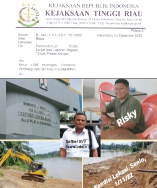 Melalui surat resmi dari kajati riau, membalas surat laporan LSM IPPH, dengan nomor: B-463/L.4.5/Fd.1/12/2022, tertanggal 06 Desember 2022, dan Rony Ketua LSM IPPH menerima balasan surat via WA staf kajati pada tanggal 19/12/22. Dengan jawaban, "bahwa surat laporan tersebut belum dapat di tindaklanjuti dan belum dilakukan pengumpulan data dan bahan keterangan lebih lanjut karena belum berakhirnya masa kontrak dan pemeliharaan".