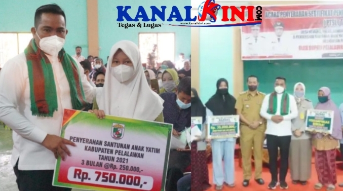 Selain penyerahatan sertifikat, Bupati Pelalawan menyerahkan santunan kepada anak yatim dan pemberian insentif petugas rumah ibadah di Kecamatan Pangkalan Kuras yang merupakan program dari Pemerintah Kabupaten Pelalawan yang akan diberikan setiap bulan.