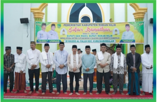 KUBU, (Kanalkini.com) - Bupati Rokan Hilir, Afrizal Sintong SIP didampingi ketua PKK Rohil, Sanimar SPd melakukan Safari Ramadhan di Kecamatan Kubu dan Kubu Babussalam sekaligus. Selasa 11/4/23, di Masjid Al Falah, Kepenghuluan Rantau Panjang Kiri, Kecamatan Kubu Babussalam.