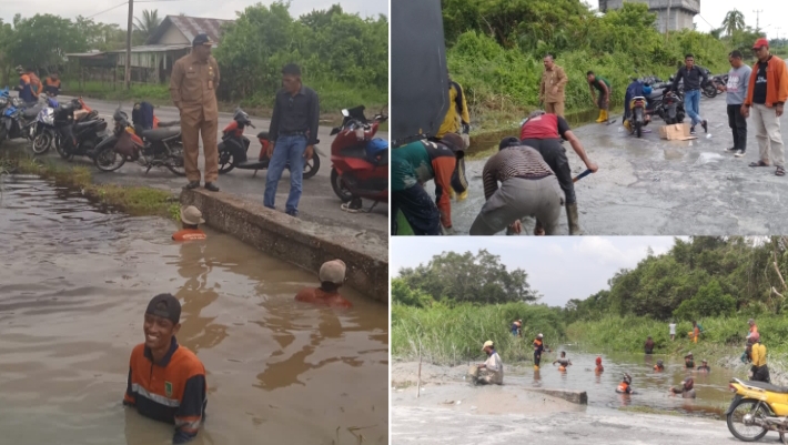 " Genangan air disini cukup dalam, kerena terjadi penangkalan akibat air pasang, dan air hujan yang turun cukup deras sehingga mengakibatkan banjir. Dan untuk mengatasi itu, kami dari Dlh Rohil saat ini menurunkan Satgas lebih kurang 60 orang," Kata Suwandi.